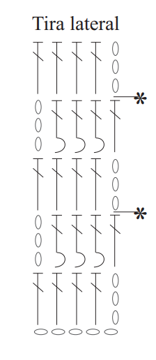 2ª v. en adelante: trabaja en filas rectas en p.a. hasta obtener 70 cm de largo (esta será la tira lateral que dará profundidad a la bolsa).