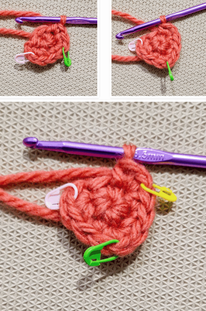 Haz 1 pd en la parte superior del primer punto bajo para cerrar la vuelta.