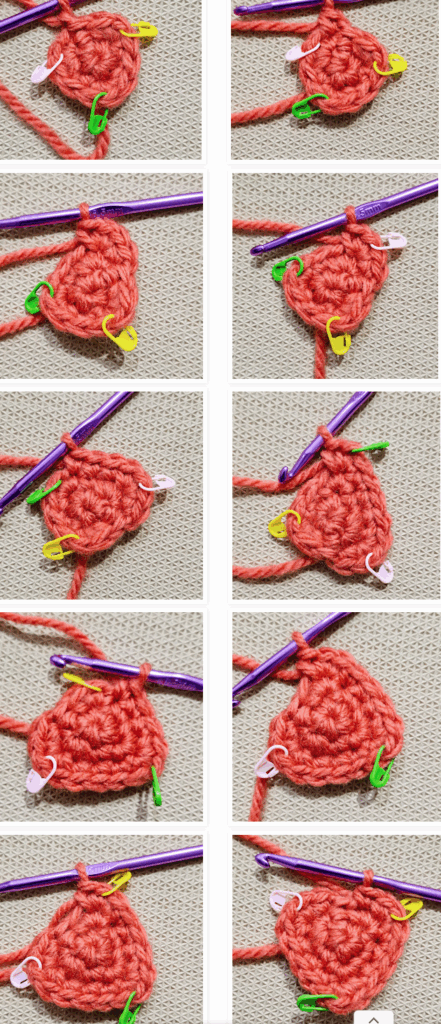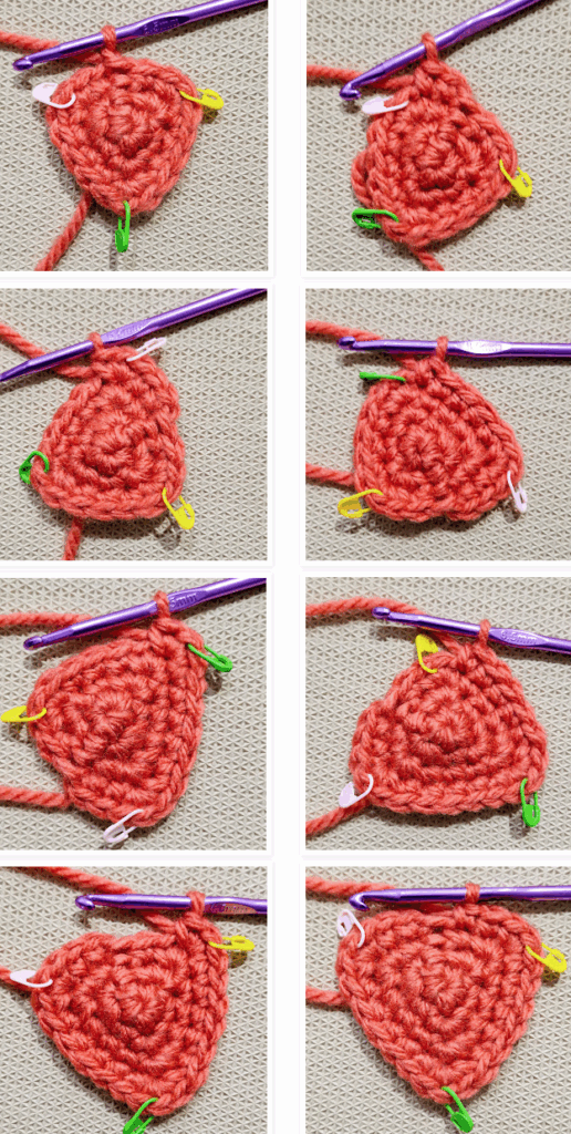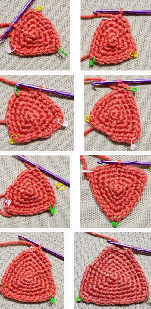 - Tejer 1 pb en cada punto hasta llegar al rincón.