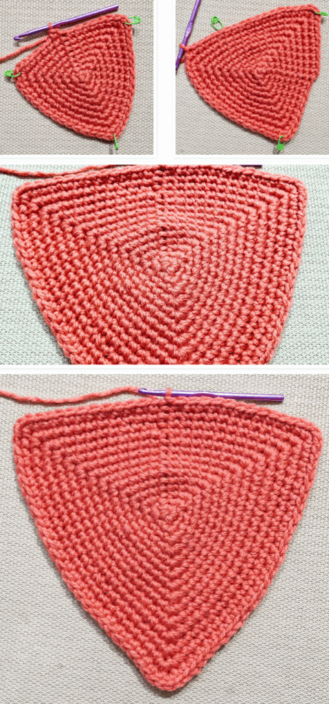 Sigue repitiendo la Vuelta 3 hasta que la pieza mida aproximadamente 33 a 36 cm o hasta alcanzar el tamaño deseado 📏✨.