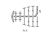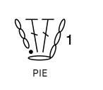 No girar. Trabajar en los bucles restantes de la cadena base: 1 pb en la siguiente cad. 1 medio pa en la siguiente. 1 pa en cada una de las próximas 3 cad (el último pa se teje en la 3.ª cad del inicio).