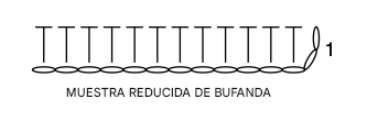 Fila 1 (revés): 1 pb en la 2.ª cad desde el gancho y 1 pb en cada cad (9). Girar.