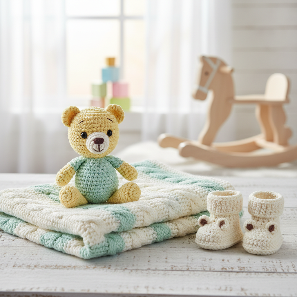 - Fibras Hipoalergénicas: El uso de algodón 100% orgánico o lanas especiales para bebés es fundamental para proteger su piel delicada. 🧶