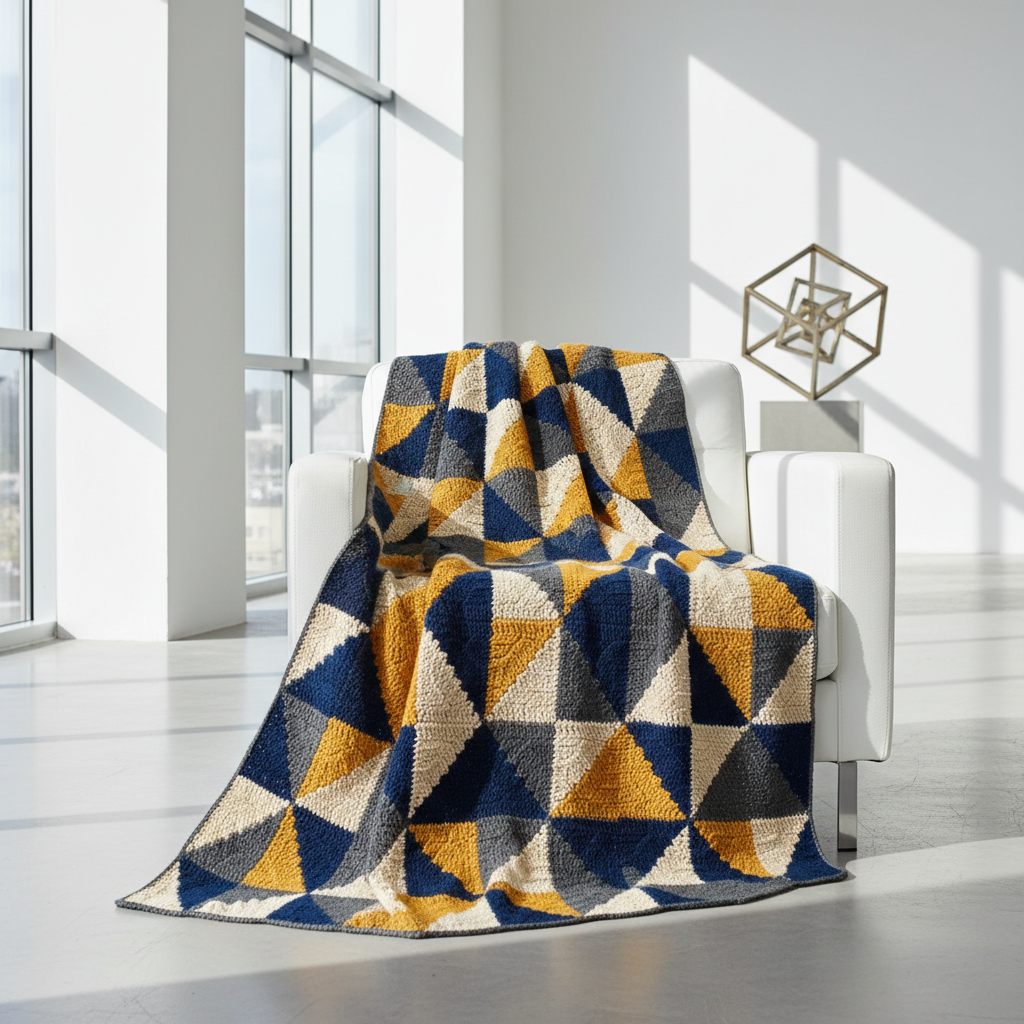 El Crochet Geométrico se basa en la repetición de figuras como triángulos, hexágonos, cuadrados y rombos para construir estructuras complejas. Es un estilo que requiere planificación y precisión, ya que cada pieza funciona como un bloque de construcción que encaja perfectamente con el siguiente. Se inspira en los suelos de mosaico hidráulico, los vitrales y el arte abstracto, creando un efecto hipnótico que cautiva la mirada.