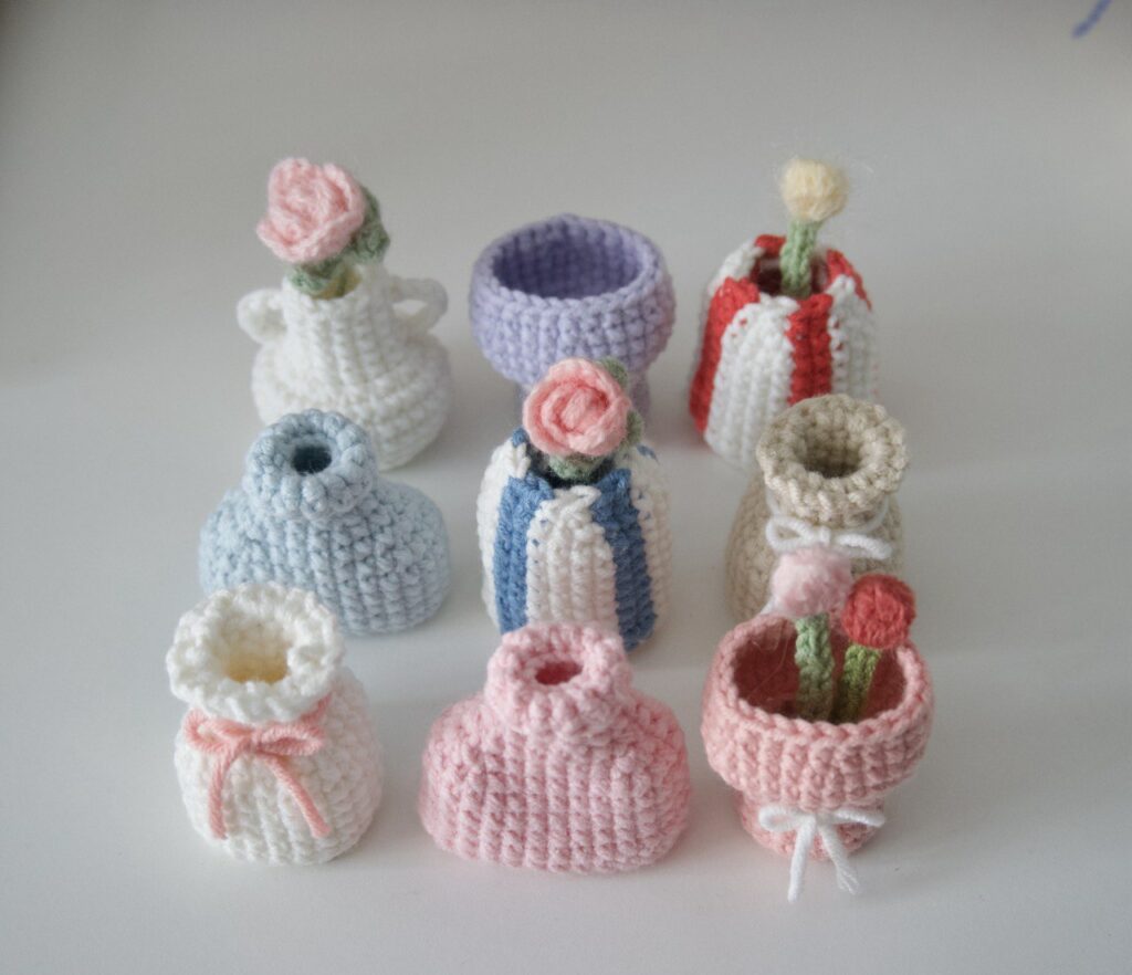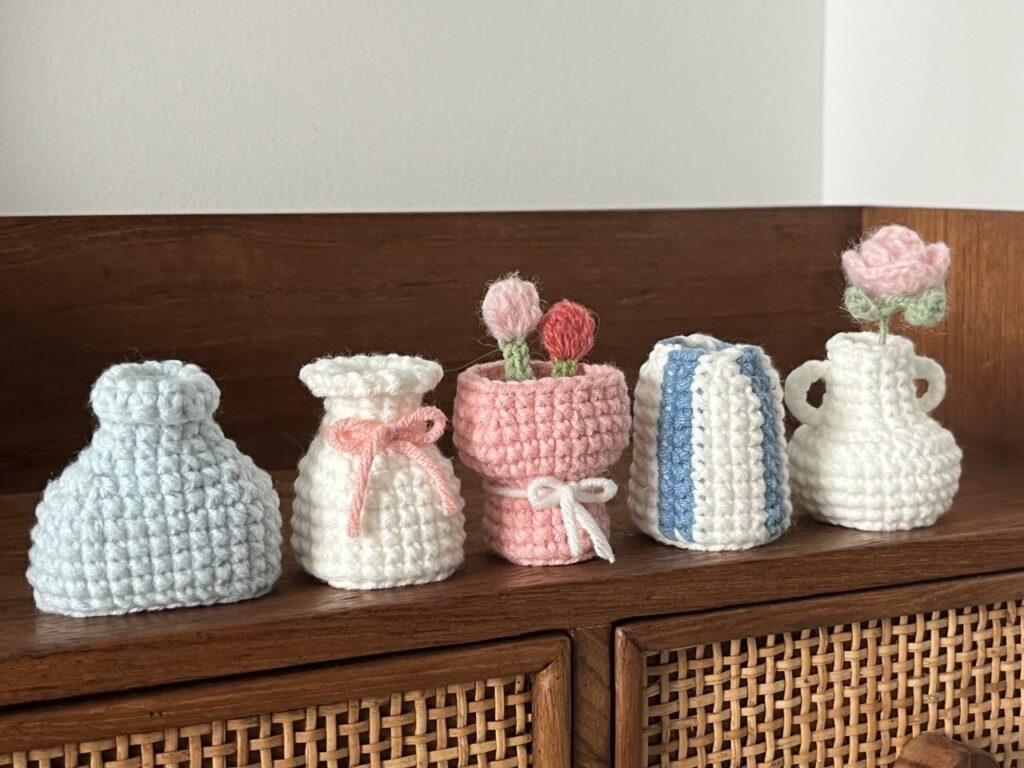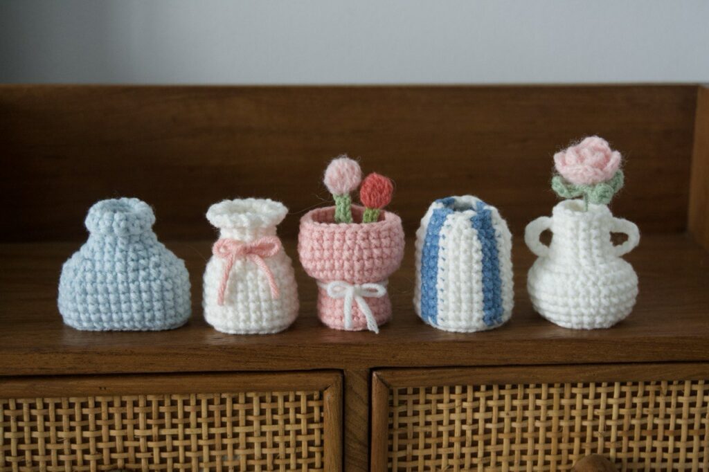 Cada uno de estos pequeños floreros es un lienzo en blanco para tu imaginación. Tienes la oportunidad de crear diseños únicos cambiando colores, añadiendo pequeños apliques o variando el hilo. Recuerda que estas piezas hechas a mano llevan tu esencia y tu energía, transformándose en objetos llenos de valor. Esta es la belleza del arte del ganchillo: convertir un simple hilo en una joya de decoración funcional. Además, estos mini floreros son una excelente opción para regalos únicos 🎁. ¡Regalar algo creado con tu dedicación es ofrecer un pedacito de tu corazón! 💖