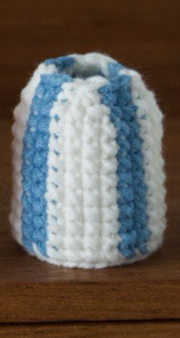 Vueltas 6-13: 1 cad, (4 pb en blanco, 2 pb en azul) 4 veces, 1 pe. (8 vueltas en total). [24]