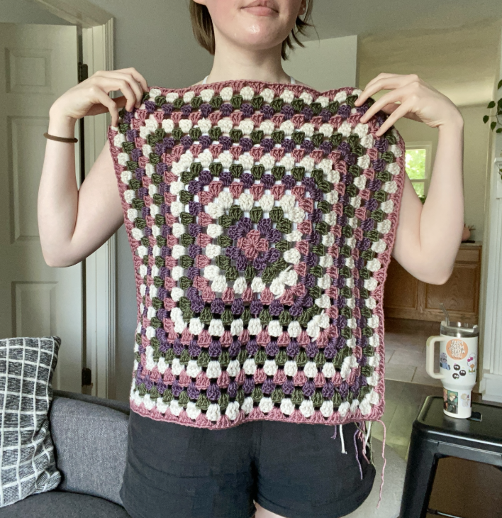 Con los cuadros de la abuela o grannys siempre busco maneras de incorporarlos en nuevos proyectos. Creo que este jersey o suéter es el proyecto perfecto para usar granny squares (uno de mis favoritos hasta ahora) y ya estoy pensando en dos combinaciones de colores más para tejerlo.😎
