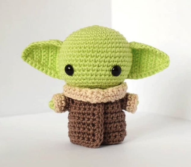✨ Tu Baby Yoda tejido a crochet queda completo y listo para lucirse.