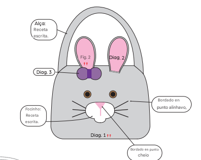 - Rellena ligeramente el hocico y cóselo al centro del bolso.