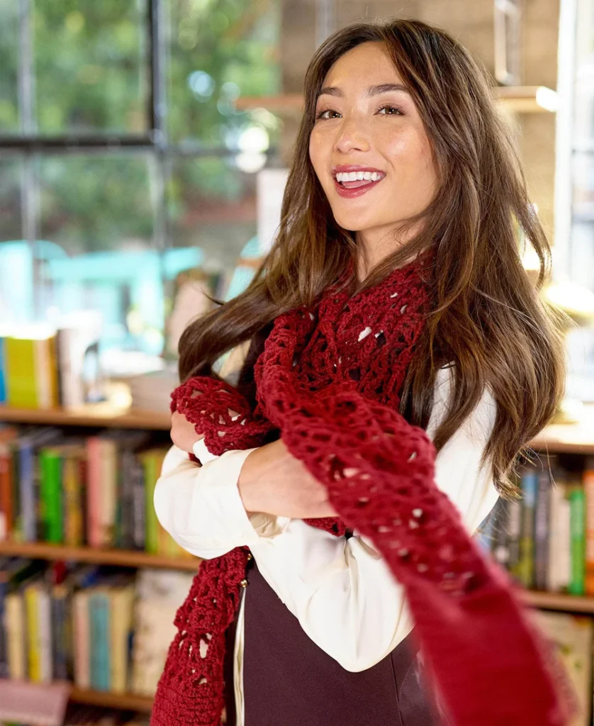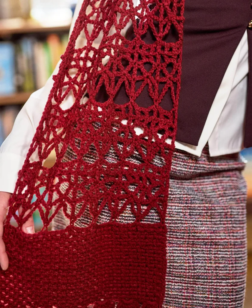 ¡Dale un toque de sofisticación a tus atuendos con el patrón de la Bufanda Zafiro a Crochet! Esta no es una bufanda común; es una pieza de diseño que combina la calidez necesaria para el otoño con una elegancia inigualable. El color burdeos profundo, sumado al hermoso patrón de encaje, la convierte en un accesorio versátil que puedes usar de múltiples maneras: como un chal elegante, envuelta al cuello o sobre los hombros, como se ve en la imagen. ¡Es hora de tejer una prenda que te hará sentir única!