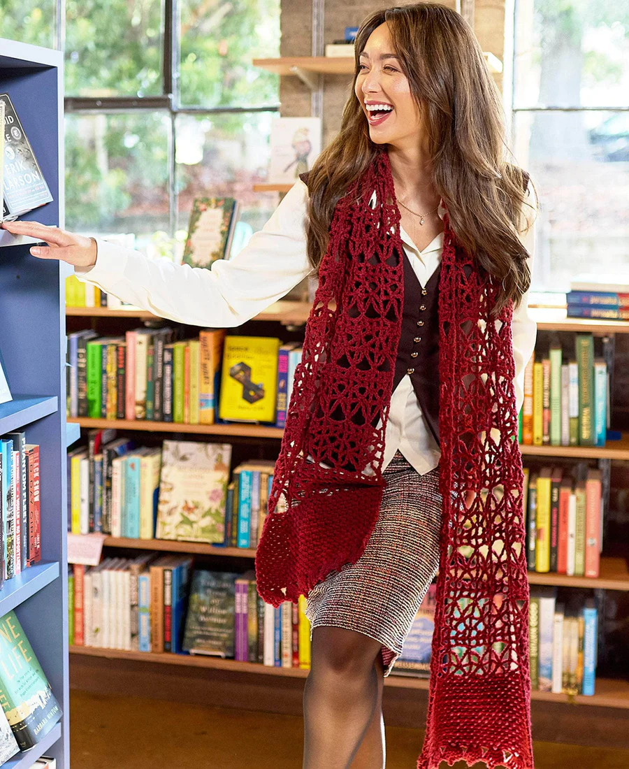 ¡Dale un toque de sofisticación a tus atuendos con el patrón de la Bufanda Zafiro a Crochet! Esta no es una bufanda común; es una pieza de diseño que combina la calidez necesaria para el otoño con una elegancia inigualable. El color burdeos profundo, sumado al hermoso patrón de encaje, la convierte en un accesorio versátil que puedes usar de múltiples maneras: como un chal elegante, envuelta al cuello o sobre los hombros, como se ve en la imagen. ¡Es hora de tejer una prenda que te hará sentir única!