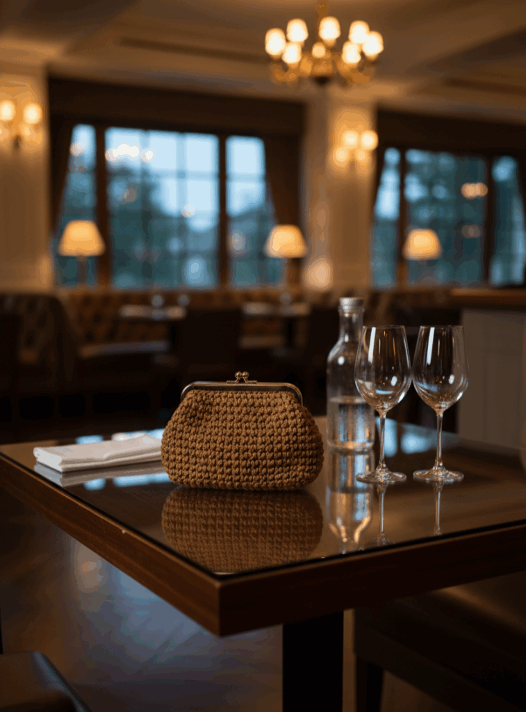 Prepárate para tejer el accesorio perfecto para tus eventos más elegantes: la Bolsa de Mano Ámbar en Crochet. Esta pieza fusiona la calidez del trabajo artesanal con el glamour de un diseño clásico de clutch. Su color ámbar (o caramelo intenso) resalta maravillosamente contra un atuendo de noche, como el vestido de seda azul de la imagen, demostrando que el crochet puede ser sinónimo de alta costura. Este bolso es la prueba de que un diseño sencillo, ejecutado con la textura rica del ganchillo, puede crear un impacto inmensamente elegante.
