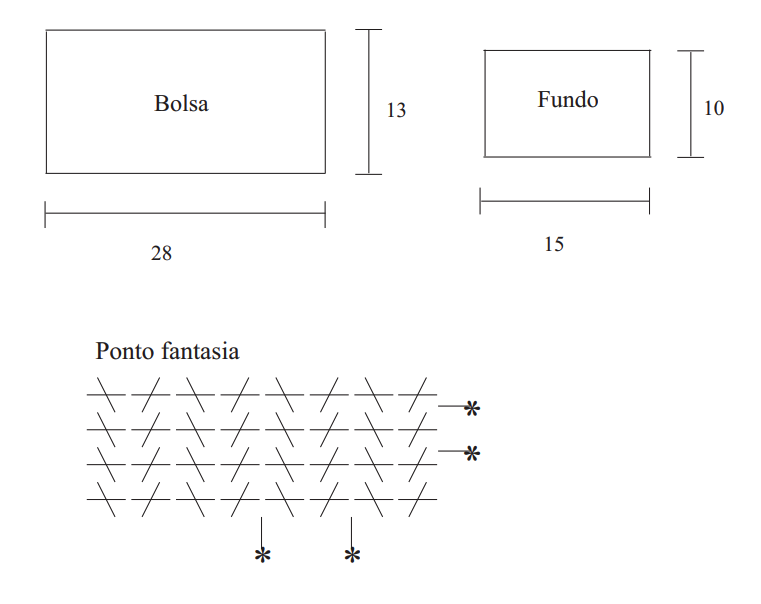 - Un cuadrado de 10 cm en punto bajo centrado con aguja de 6.0 mm = 13 pts x 11 hileras.