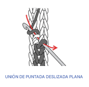 - Mantener la hebra de trabajo por debajo para una costura plana.