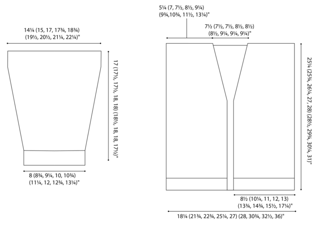 Repetir hasta medir aprox. 44 (45, 43, 45, 47.5) (46, 49.5, 51, 53) cm desde el borde inferior.