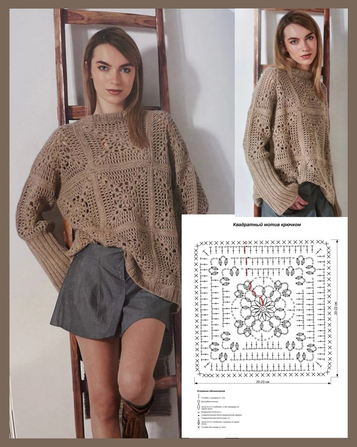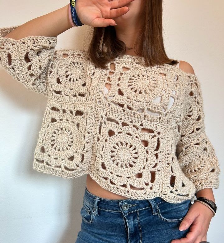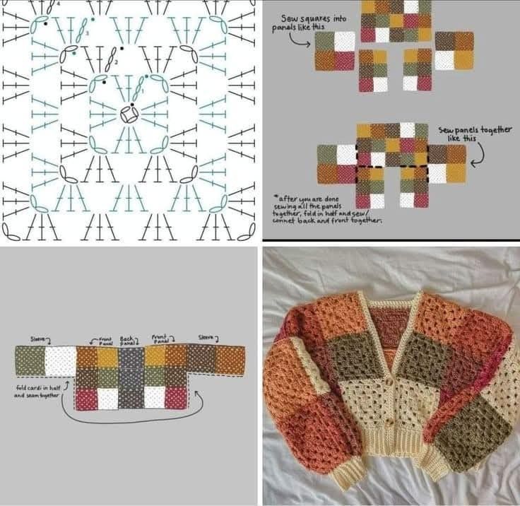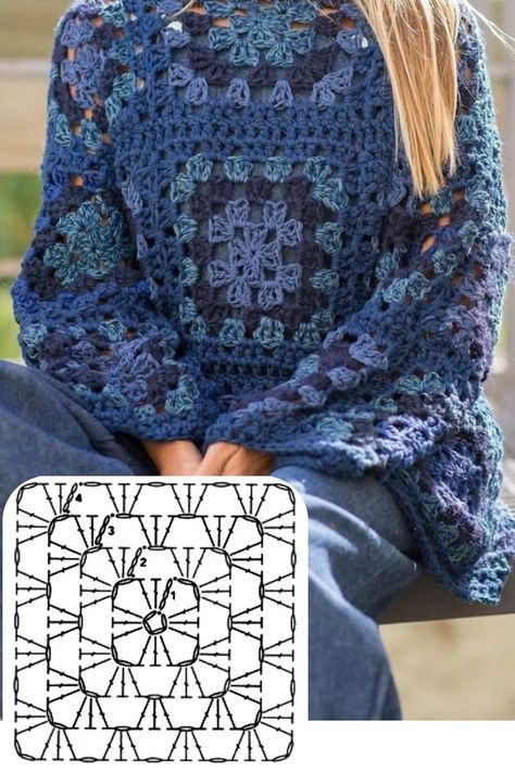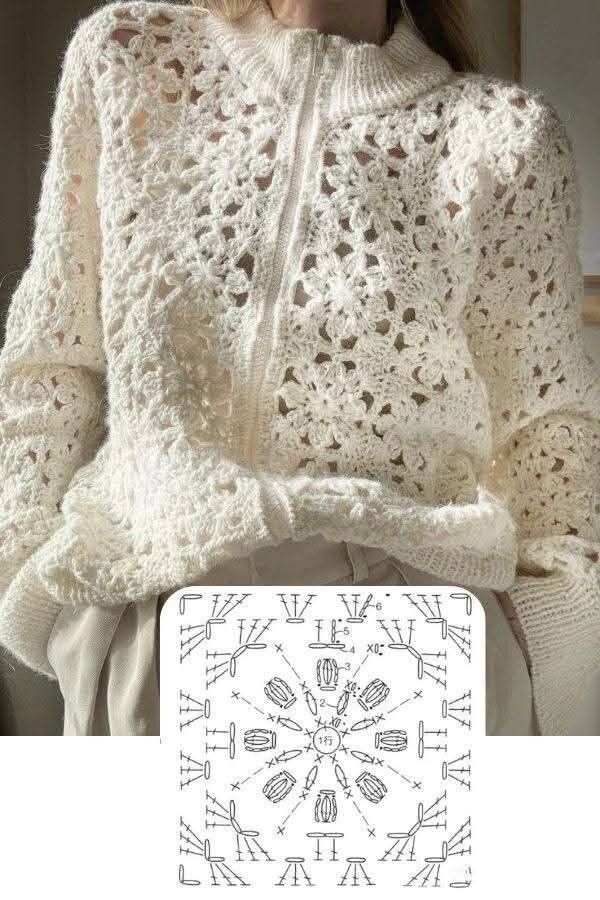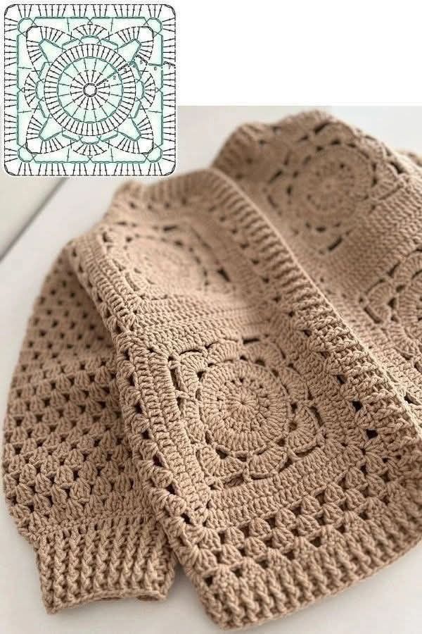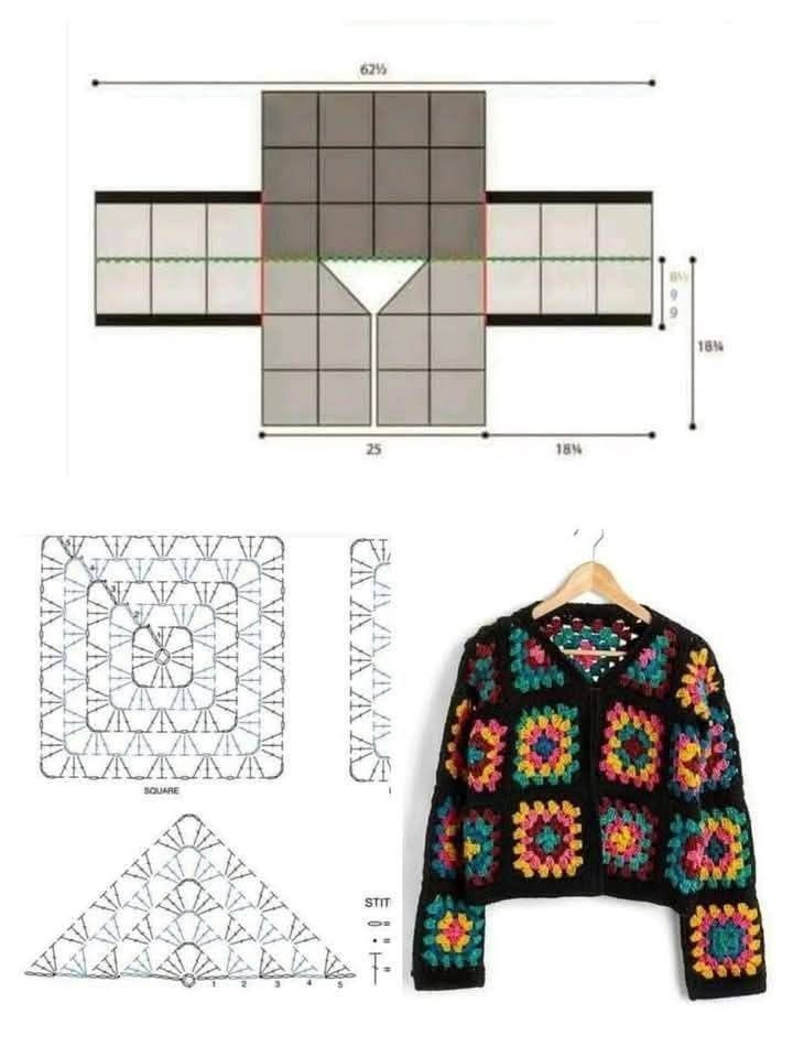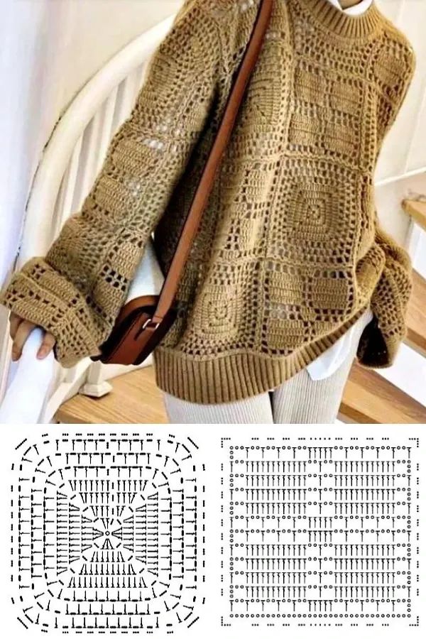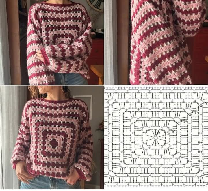 Ahora, sin más vueltas te compartimos el jersey, con los puntos en crochet y diseños de cuadros de la abuela más amados en este 2025 😊🧶