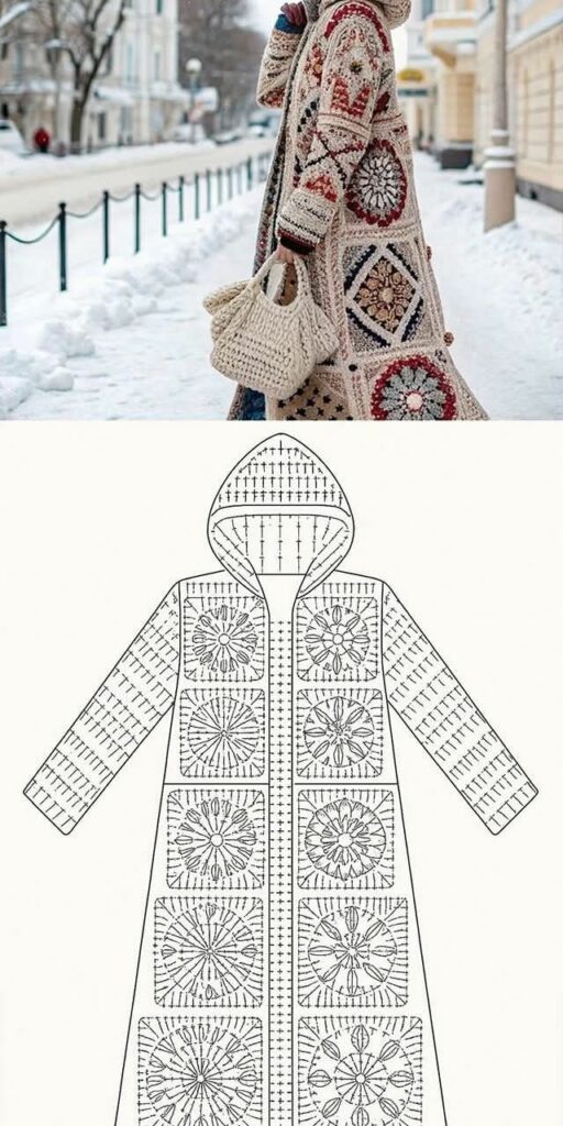 Sin embargo, entre tanta sofisticación técnica, el diseño que realmente conquistó el corazón de todos fue el icónico cuadrado de la abuela (Granny Square). 👵💖 Su resurgimiento se debió a su fascinante mezcla de simplicidad y versatilidad geométrica. Al ser una técnica de construcción modular, permitió que tanto principiantes que apenas tomaban la aguja por primera vez, como expertos admiradores de este arte, pudieran crear prendas de alto impacto visual sin complicaciones extremas. 🧶✅ ¡La forma fácil y rítmica de tejer estos cuadros convirtió a los jerseys en el proyecto favorito del año! 🏆🤩