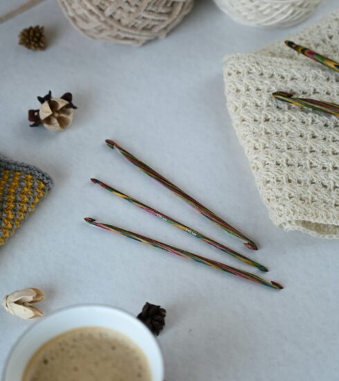 - Usa objetos relacionados al crochet: agujas, hilos, tijeras.