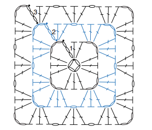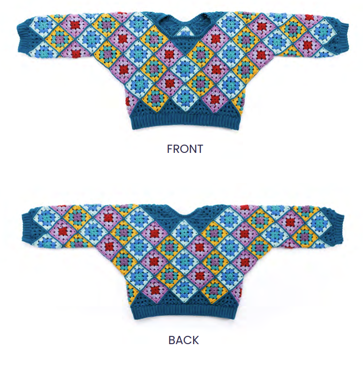 Nota: 1 ovillo del hilo multicolor permite realizar aproximadamente 32 cuadros Granny.