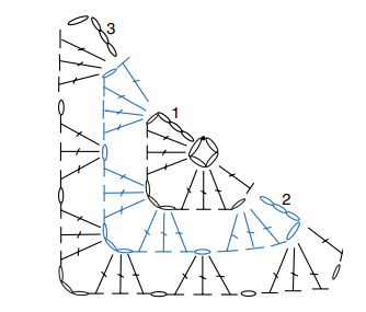 2 p.a. alrededor del poste del siguiente p.a. repetir 3 veces.