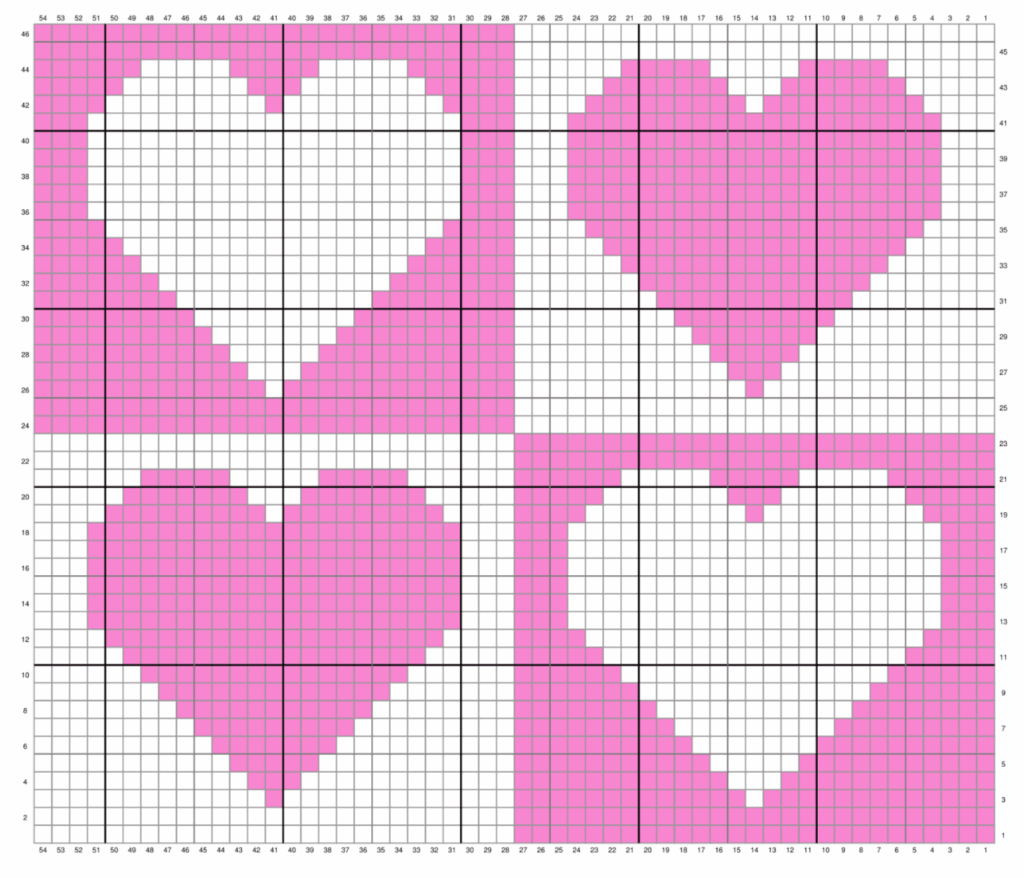👉 La manta se compone de 5 corazones de ancho y 4 corazones de alto.