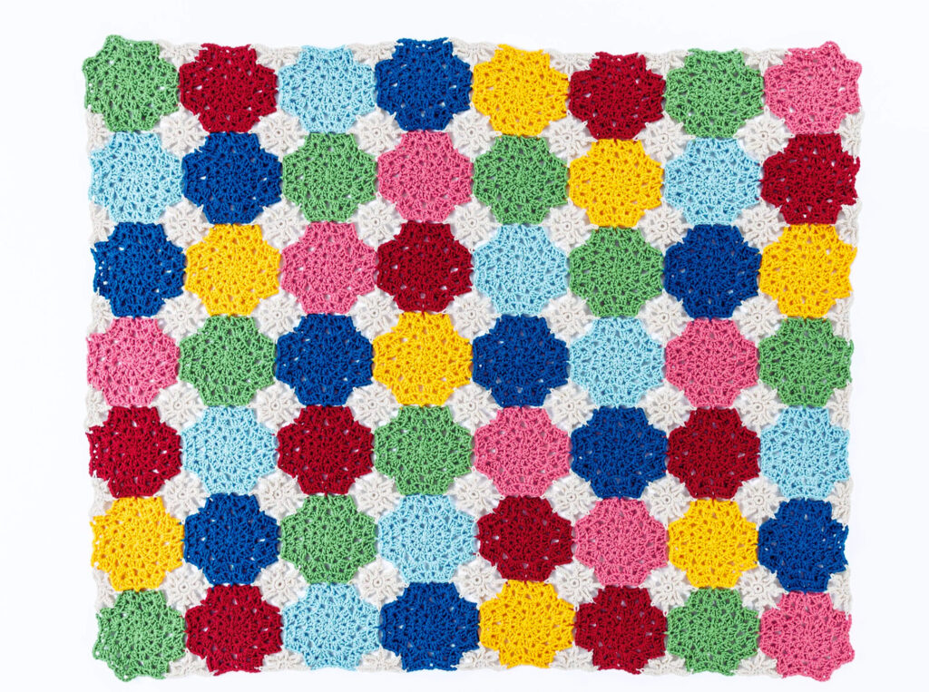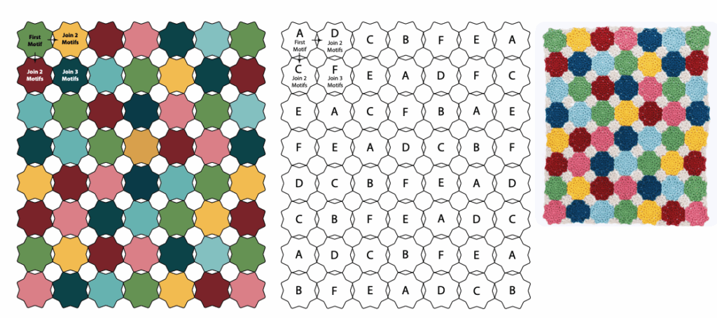 La manta se trabaja por motivos separados que se unen mientras se teje.