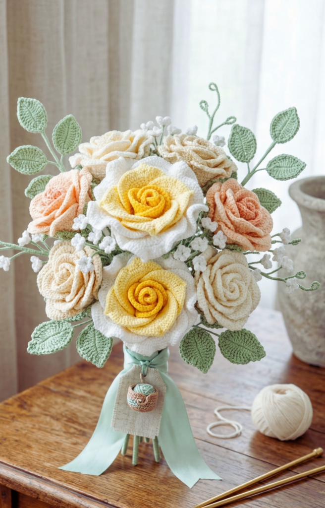 Si eres principiante, mi consejo de oro es: ¡numera tus pétalos! 🔢 Las rosas se arman por capas (de los pétalos más pequeños en el centro a los más grandes afuera). Mantener el orden de tejido te facilitará enormemente el montaje final. Para las expertas, el toque maestro está en el bloqueo y sombreado 🤫. Una vez tejida, puedes usar un poco de vapor para dar forma a los bordes de los pétalos. Si quieres un realismo de nivel superior, usa un poco de maquillaje (sombras de ojos o tizas pastel) para sombrear ligeramente la base de los pétalos centrales. ¡Parecerá una rosa recién cortada del jardín! ✨🏆