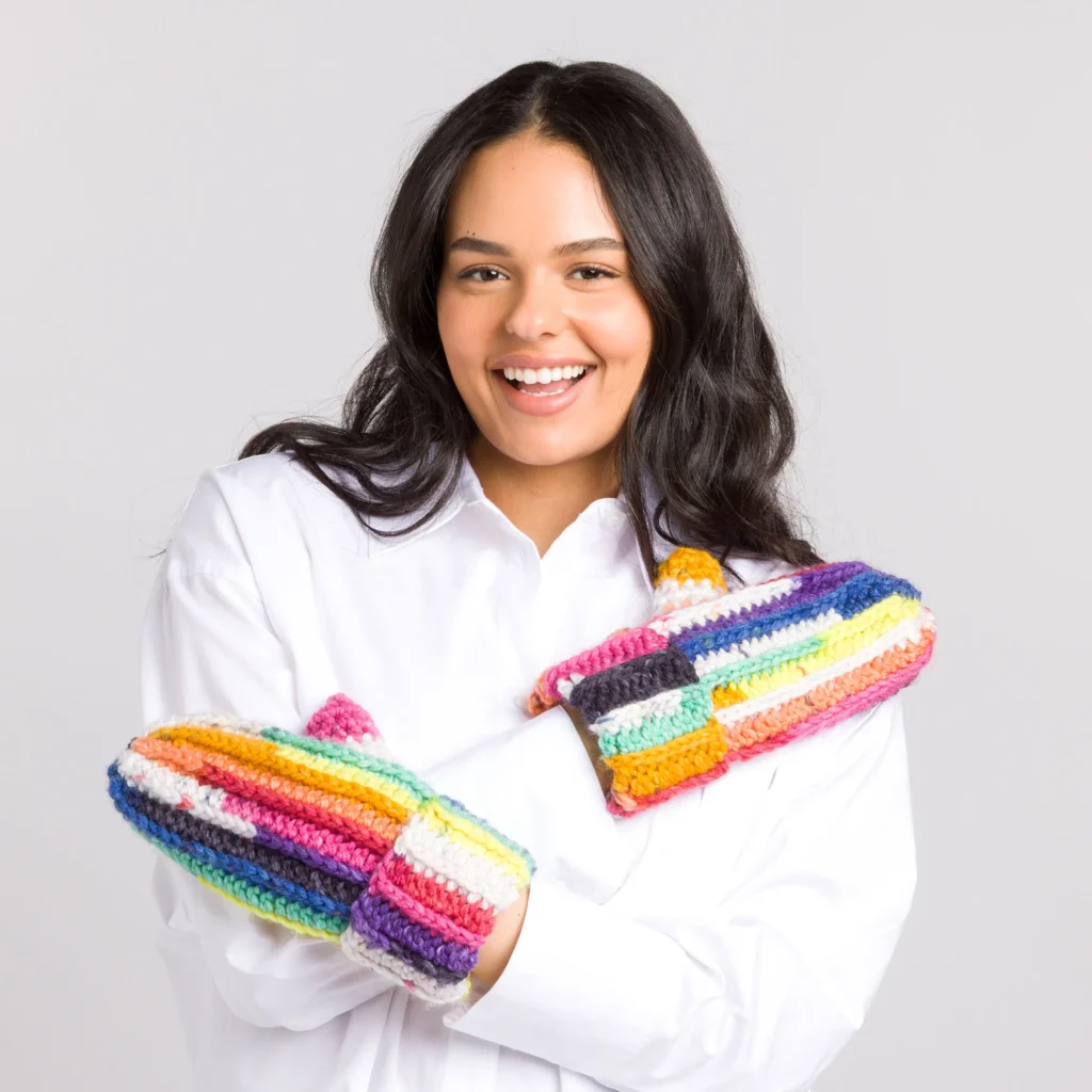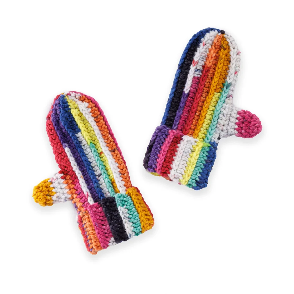 Tejer estas manoplas es un proyecto rápido y gratificante que ofrece la satisfacción de crear algo funcional y hermoso en poco tiempo. El ritmo constante del ganchillo, combinado con la emoción de introducir un nuevo color cada pocas filas, convierte el proceso en una actividad relajante y estimulante. Es un excelente proyecto para llevar contigo y una forma terapéutica de desconectar mientras te concentras en la calidez que estás creando para tus manos o para las de un ser querido.