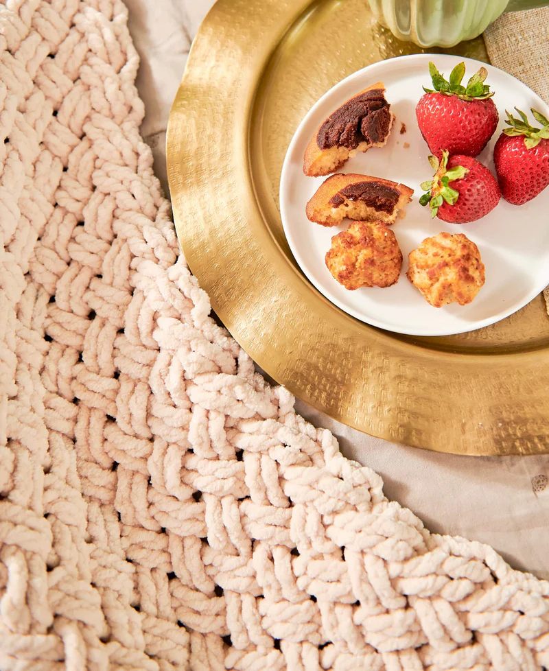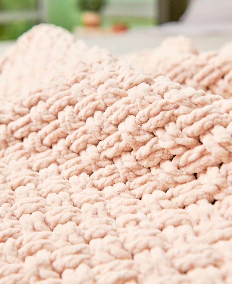 Esta manta se teje en plano, trabajando en filas de ida y vuelta. Al finalizar el cuerpo principal, se teje un borde de punto bajo alrededor de toda la manta para darle un acabado limpio y uniforme.