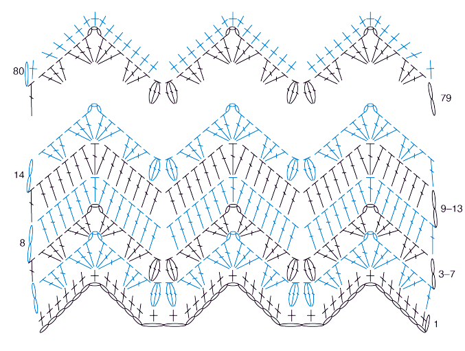 (3 pa, cad 3, 3 pa) en el sig pb. Saltar 2 pb. 3 pa en el sig pb. Saltar 2 pb. 1 pa en el último pb. Girar.