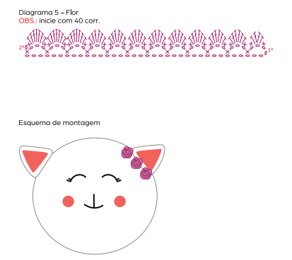 Hacer 3 flores iguales y fijarlas al mantel según el diagrama de montaje.