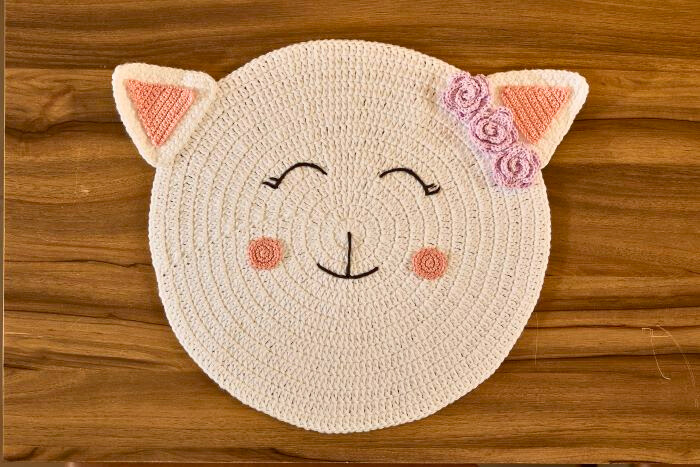 Mantel Individual Infantil con Forma de Gato en Crochet PATRON GRATIS