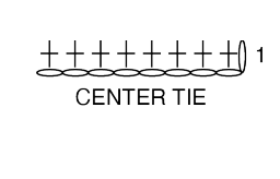 Fila 1 (LD): 1 pb en la 2.ª cad desde el gancho, 1 pb en cada cad. (8 pb)