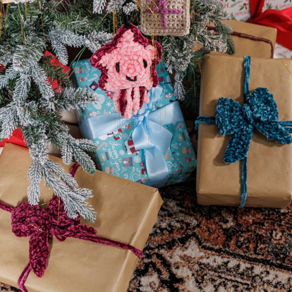 🎀 Lazos de Terciopelo a Crochet: Lujo y Suavidad para tu Navidad 🎄