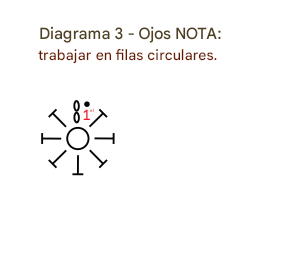 Cejas en negro, hocico en marrón, dientes en crudo. Seguir diagrama de montaje.