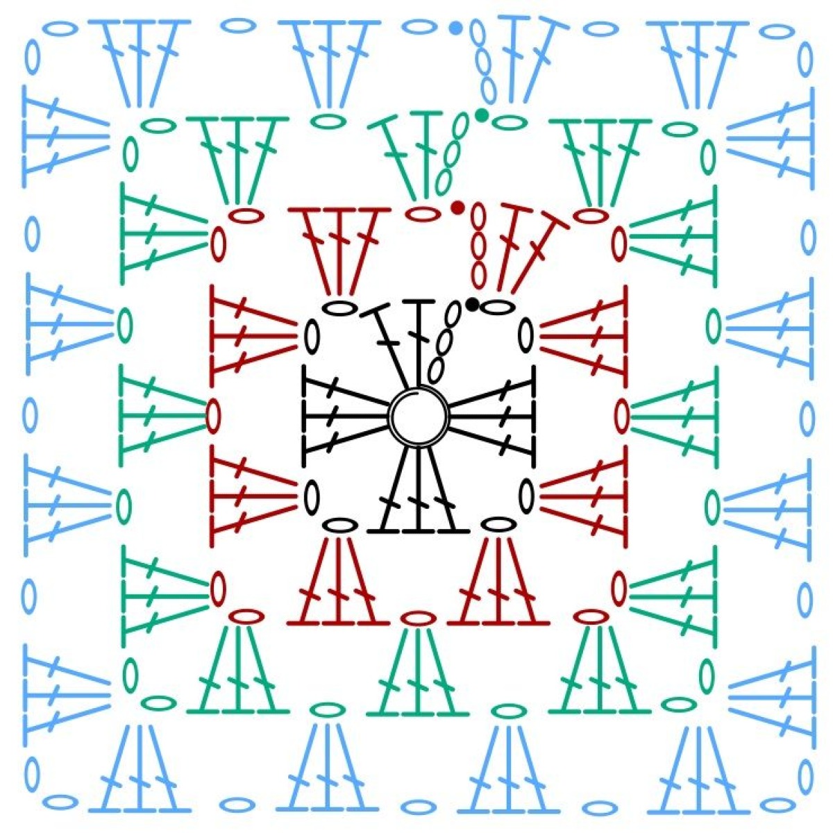 Repite exactamente las vueltas 1 a 12 del Cuadrado 1 🧶