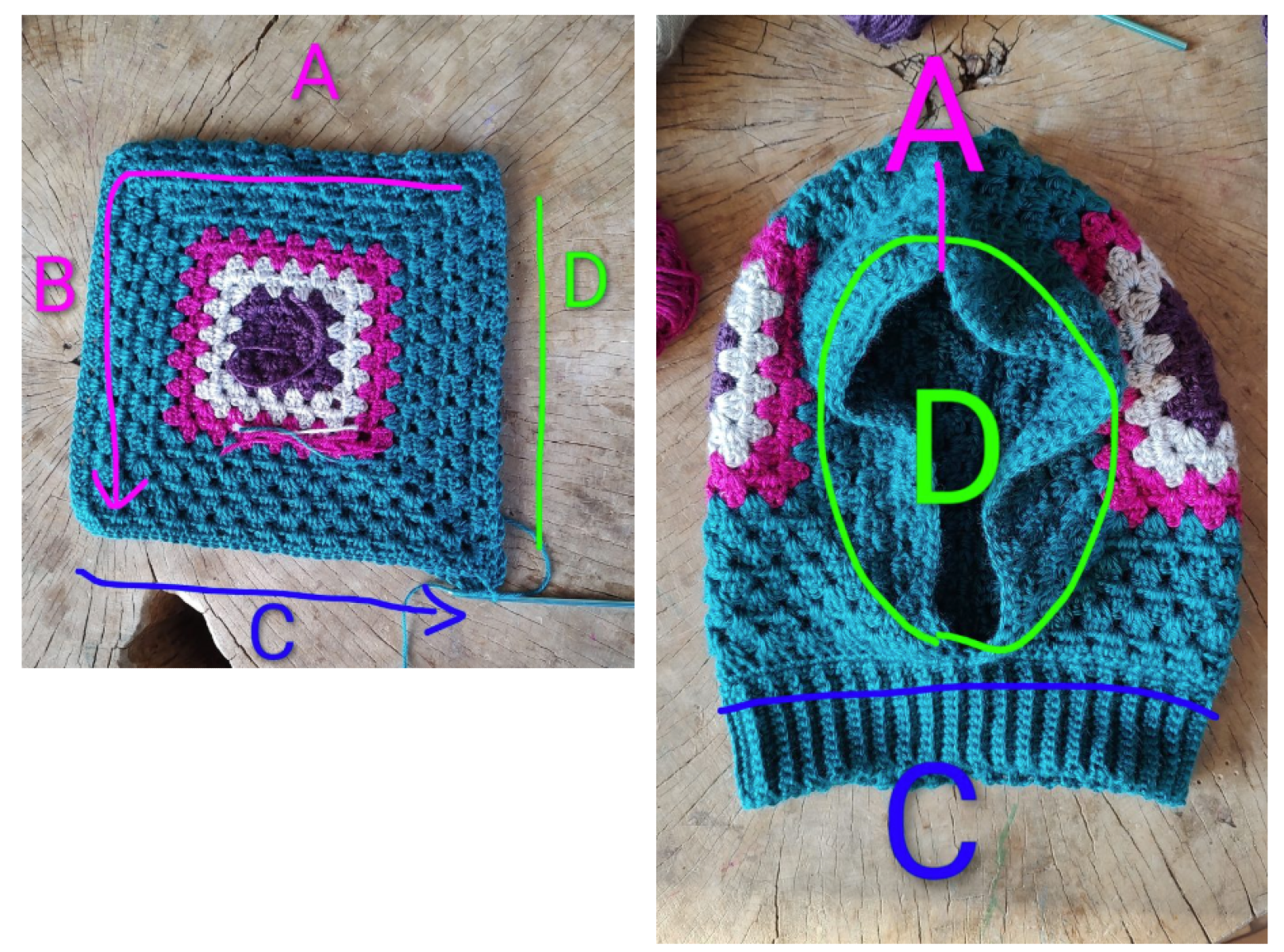 ✨ La capucha se compone de 2 cuadrados granny