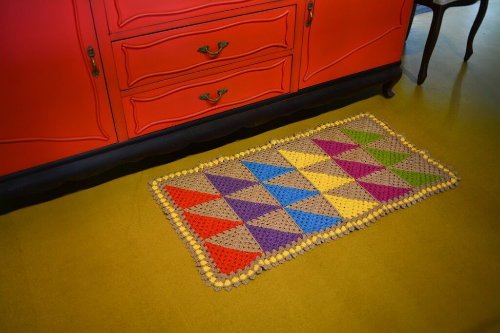 Recuerdo cuando mi abuela me enseñó mis primeras puntadas de crochet. Siempre decía que cada pieza hecha a mano era una historia, y que con los «grannys» se podían crear mosaicos de color y textura. Esa idea me inspiró a ir más allá de los patrones tradicionales y explorar el Patchwork en crochet. Este tipo de alfombra es la culminación de esa filosofía: la oportunidad de unir pequeños «grannys» triangulares, llenos de vida y color, para crear una alfombra que no es solo un objeto, sino una pieza de tu propia expresión. ¡Es hora de darle un giro vibrante a tus espacios!