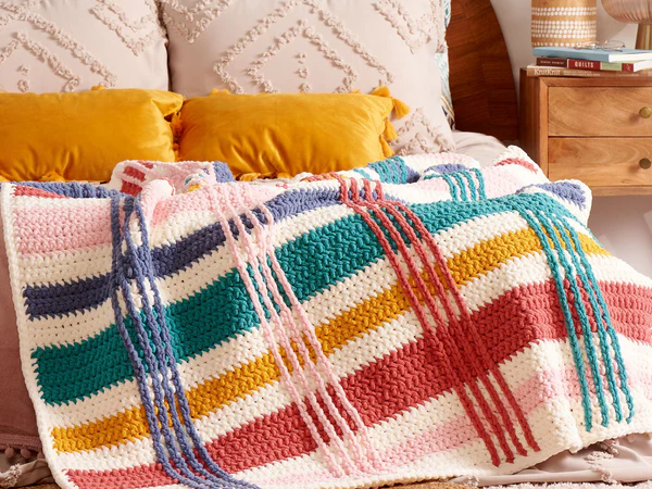 Patrón Gratis Manta a Rayas Aurora Polar en Crochet paso a paso
