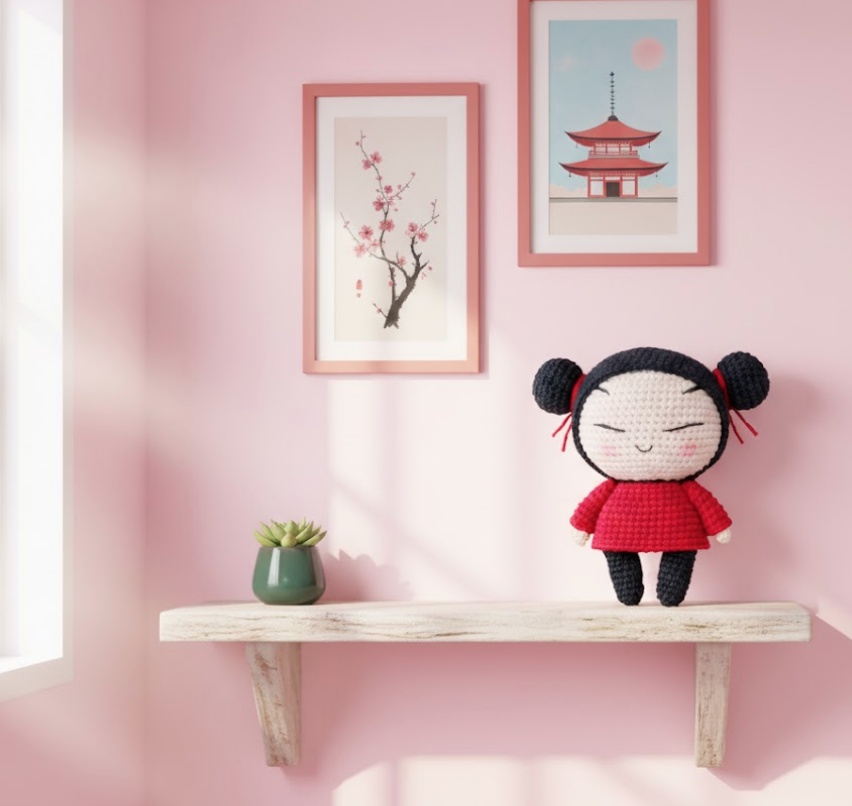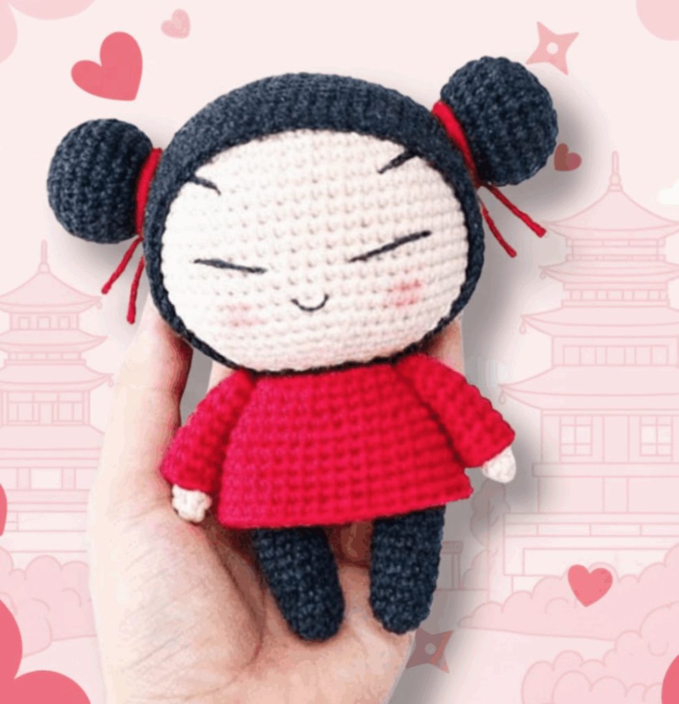 La magia del crochet te permite ser la creadora de piezas que son verdaderamente exclusivas y llenas de personalidad. Con este patrón, tendrás la libertad de elegir los colores que más te gusten para Pucca, o seguir su diseño clásico para capturar su esencia. 🧵 La enorme satisfacción de ver cómo tus manos transforman el hilo en un personaje tan reconocido y querido es incomparable, celebrando el valor de lo hecho a mano y tu habilidad. Cada detalle, desde sus moños hasta su sonrisa, será un reflejo de tu talento. 😊