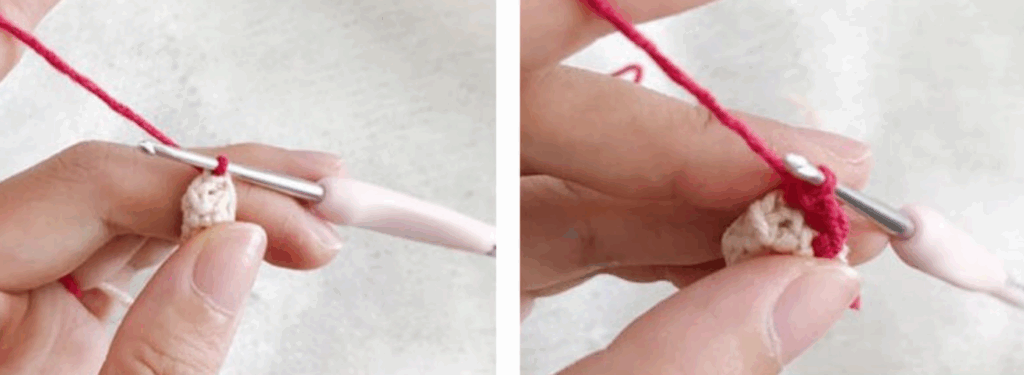 Haz 3 cadenas, une con la 1.ª pierna y continúa con el cuerpo.