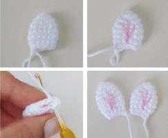 Coser las orejas entre las vueltas 2 y 3 de la cabeza, dejando 2 puntos de separación entre ellas.