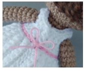 Unir el hilo blanco en la pierna derecha donde está el marcador y tejer 4 cadenetas.