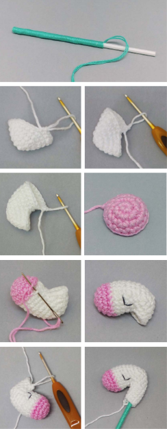 Unir un nuevo hilo blanco en la vuelta 6 de la cabeza.