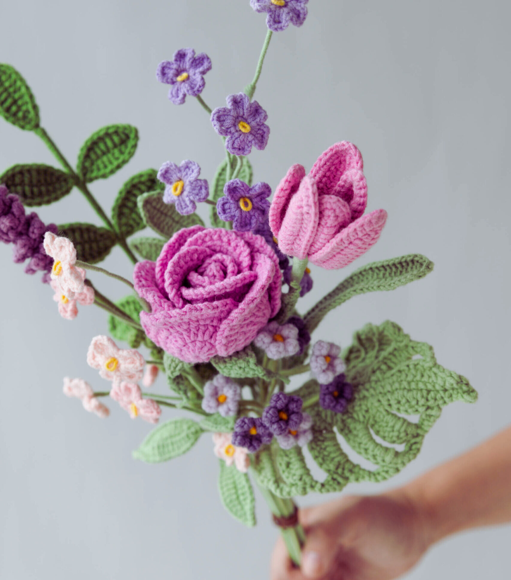 el amor y la belleza . Las rosas son una de las flores más populares del mundo y son un complemento precioso para cualquier ramo de flores de crochet. 🌹