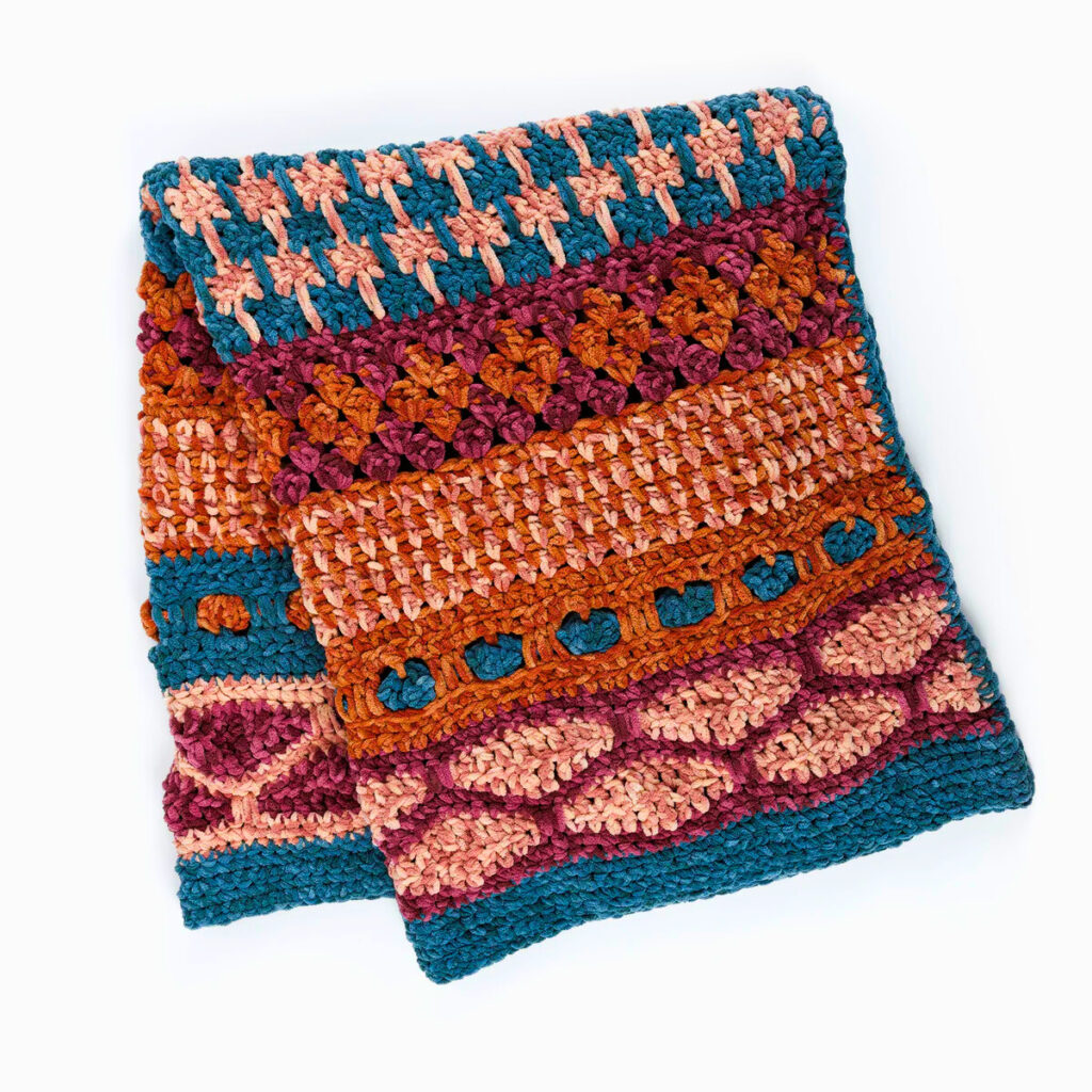 • La manta se trabaja en paneles con diferentes puntos de crochet.