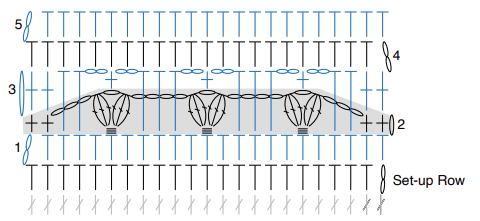 Hacer lazada y sacar un bucle largo en el punto saltado 3 filas abajo.