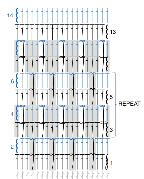 Repetir filas 3 a 6 una vez más, luego repetir filas 3 y 4 una vez.