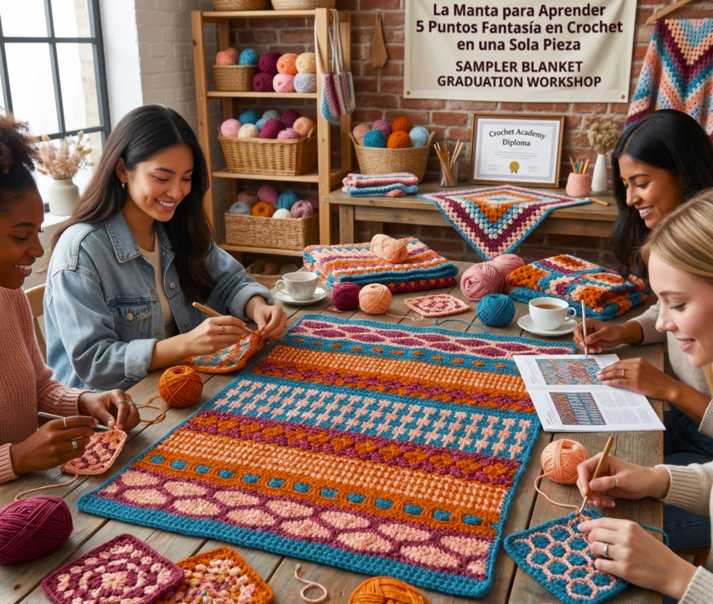 ¡GRADÚATE COMO DISEÑADORA! La Manta para Aprender 5 Puntos Fantasía en Crochet 🧶✨