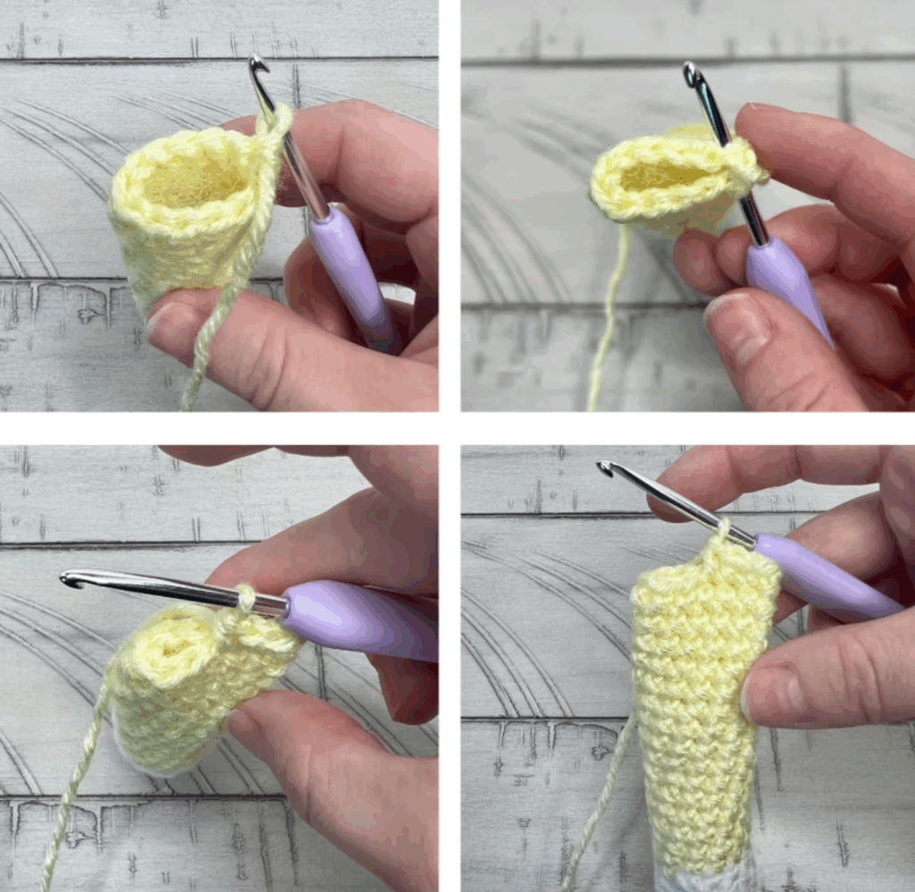 Cierra la primera pierna, pero no cierres la segunda, ya que en ella continuarás el cuerpo. 🧦